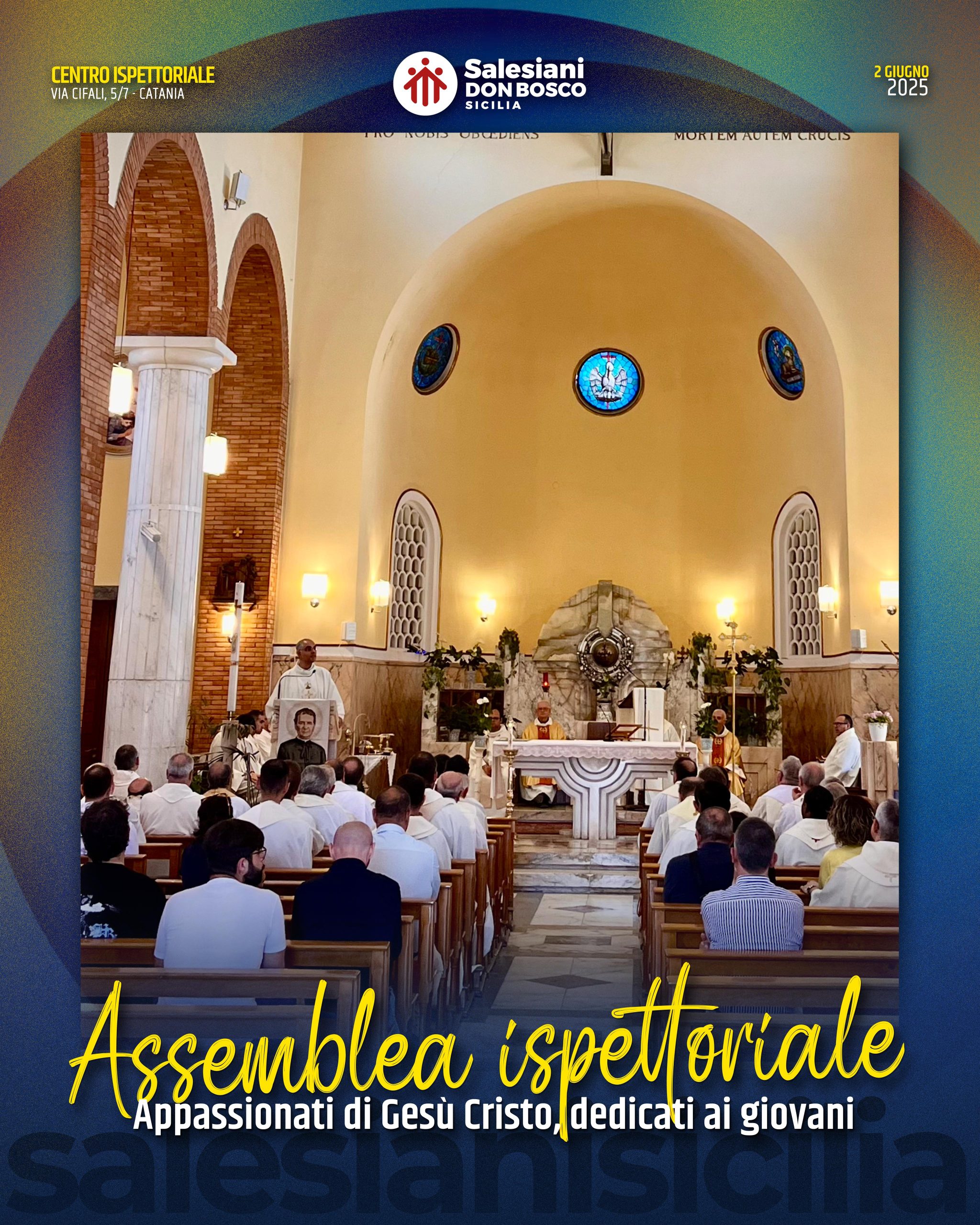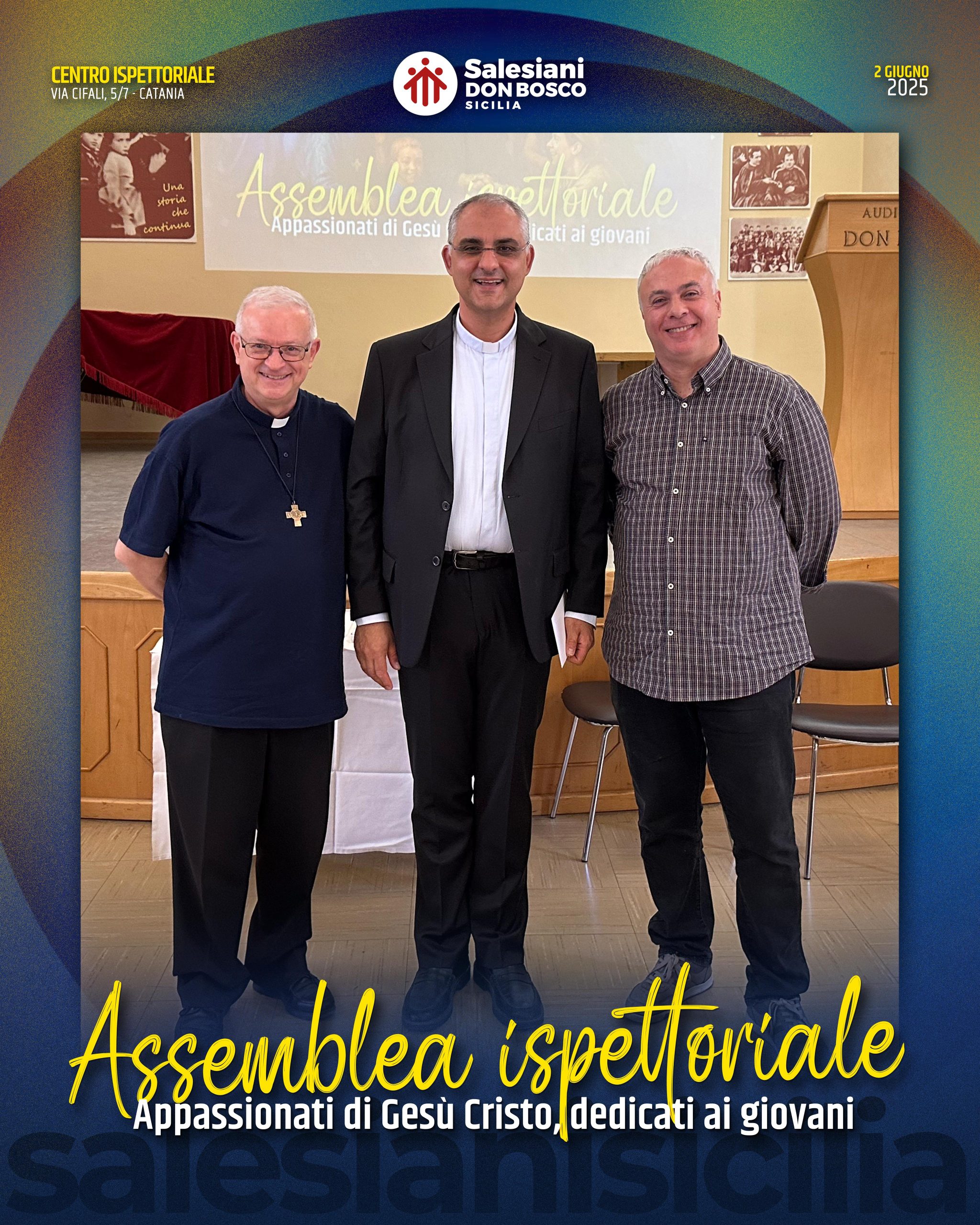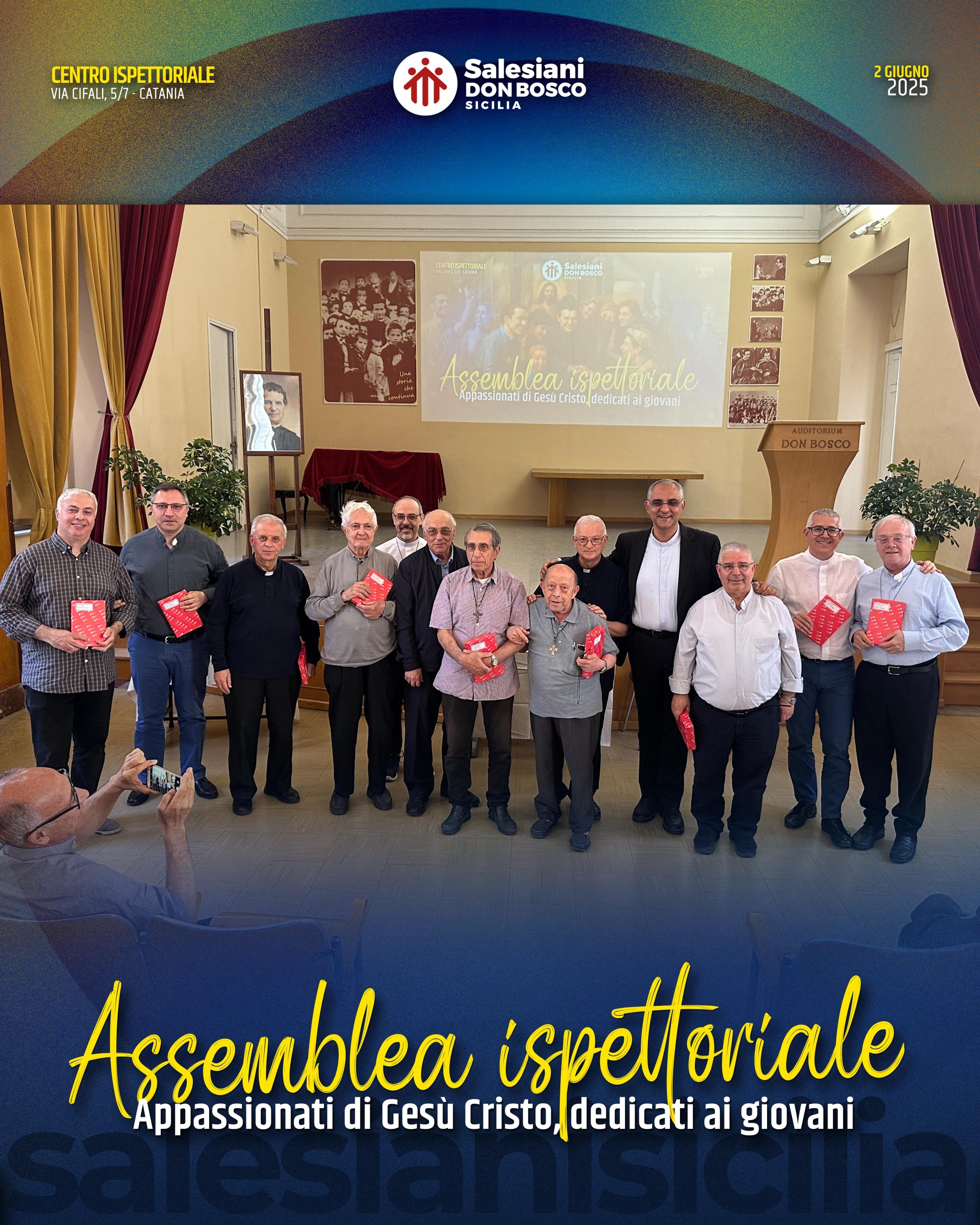 Presso il Centro Ispettoriale di Catania si è svolta ieri, 2 giugno, la tradizionale Assemblea Ispettoriale, momento denso di ascolto, discernimento e fraternità, che ha visto riuniti i Salesiani della Sicilia insieme ai laici responsabili delle opere a conduzione laicale.