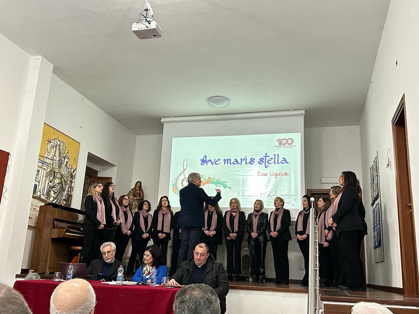 La magistrale moderazione dell’incontro da parte della dottoressa Marisa Falzone e gli intermezzi musicali proposti dal coro di voci femminili “Resonantiæ Camera Chorus” hanno impreziosito la serata rendendola piacevole per il numeroso pubblico intervenuto, arricchito dalla gradita presenza di Sua Eccellenza Monsignor Antonino Migliore, Vescovo emerito di Coxim (Brasile), di don Franco Di Natale, Vicario Ispettoriale dei Salesiani di Sicilia e di altre autorità locali.